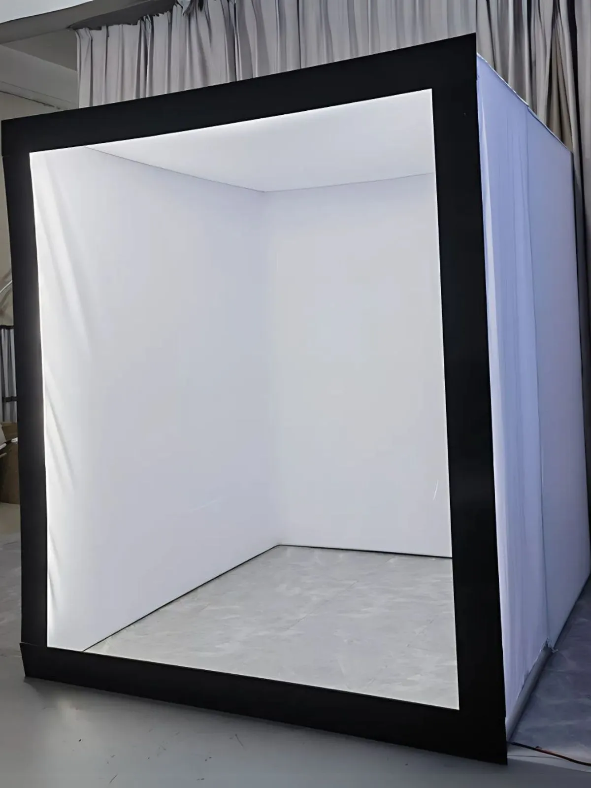 The portable magazine photo booth is designed to accommodate up to 8 people, making it perfect for both group and solo shots. Its modern structure features a clean, clear acrylic front and elegant white draped sides. These crisp white drapes add a touch of upscale refinement to the booth, seamlessly blending into any event décor. The portable setup ensures that the booth can be easily transported and set up at any venue, from grand event halls to cozy office spaces.